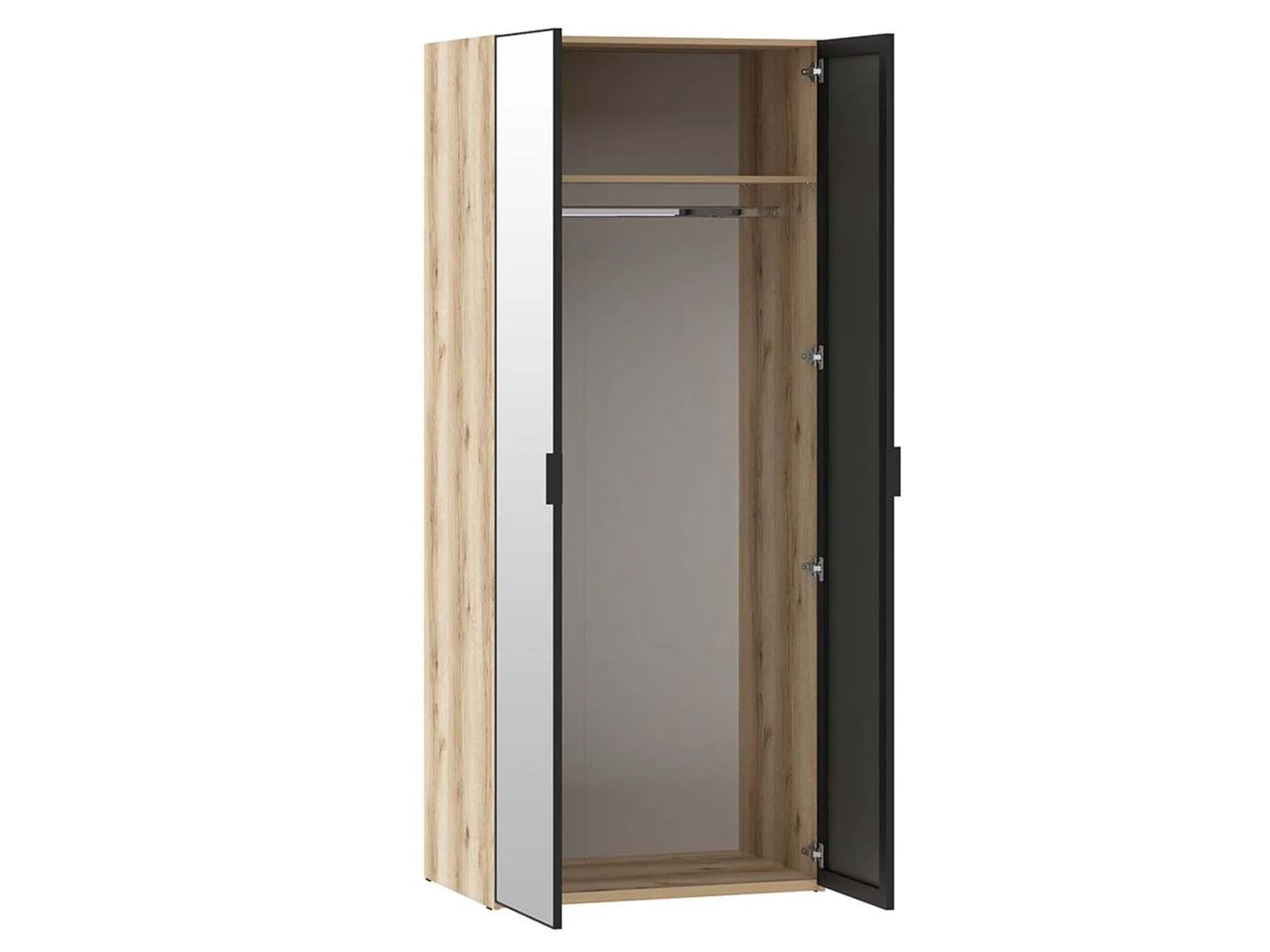 Шкаф с зеркалом Арден 200.04 - Модель оснащена двумя распашными дверцами-зеркалами в алюминиевых рамах, внутри которых расположены полка и вешалка. Качественные материалы и лаконичный дизайн делают его не только функциональным элементом хранения, но и стильным интерьерным акцентом.