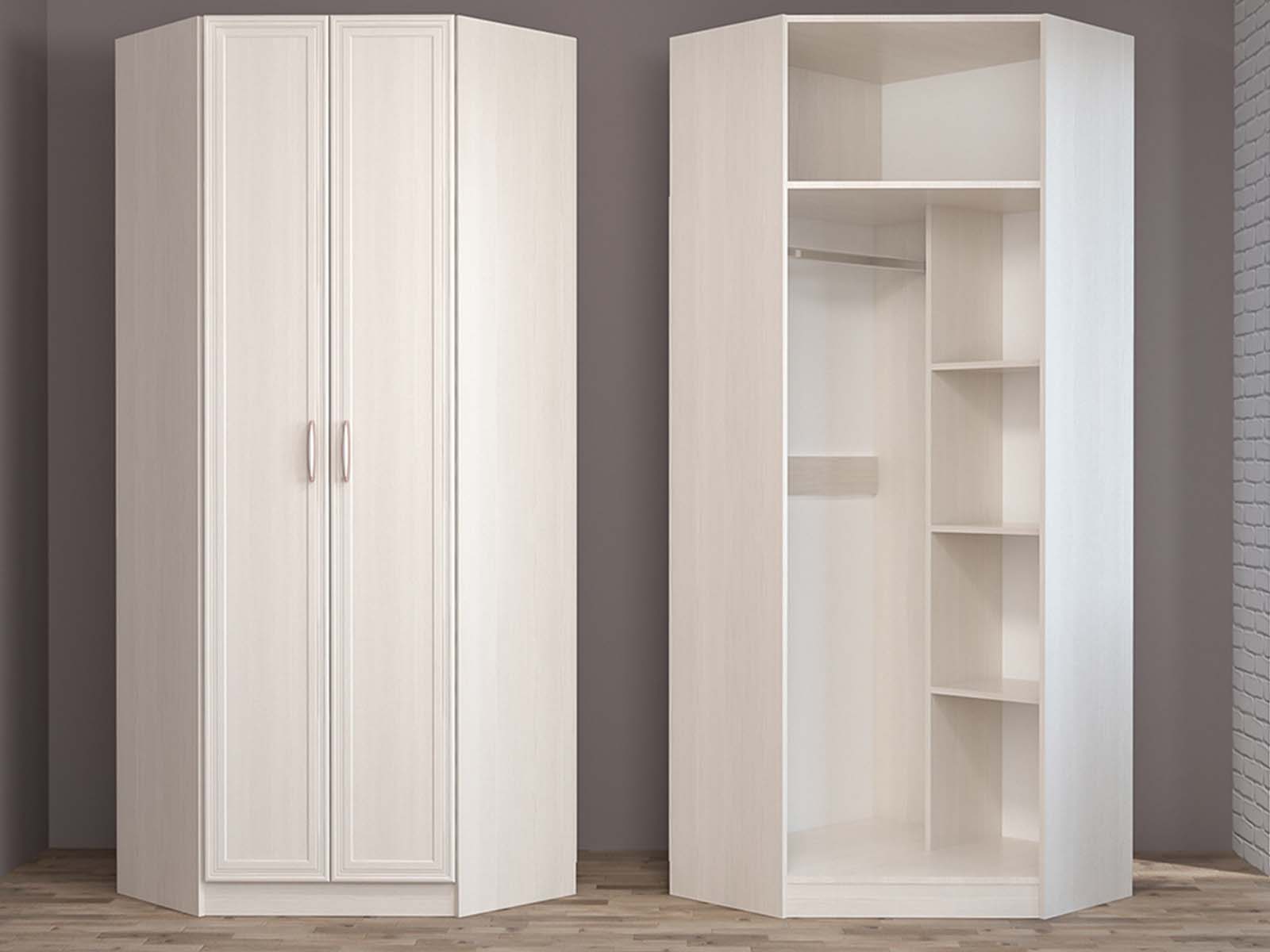 Шкаф угловой Иннэс-6 - удобное решение для гардероба. Внутреннее наполнение включает полки и штангу. Двухцветное исполнение добавляет модели выразительности.