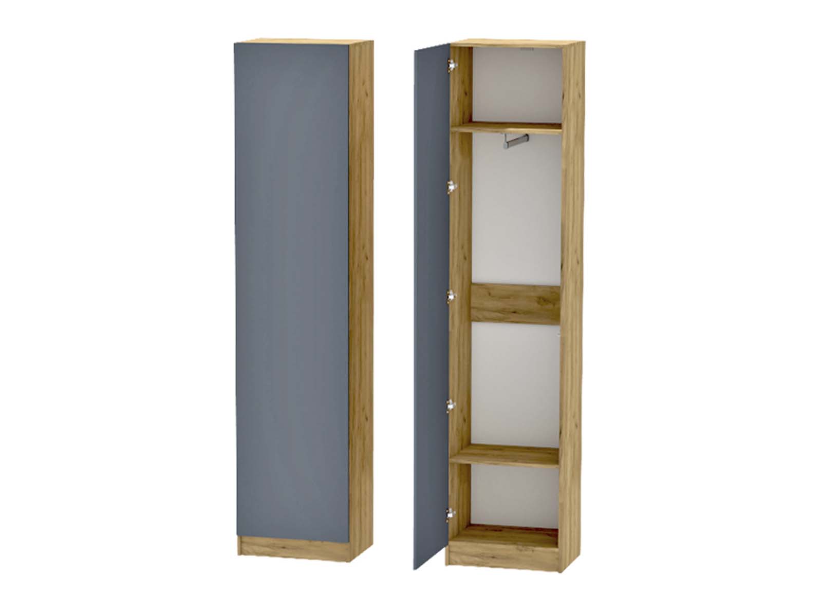 Пенал Иннэс-10, дуб крафт золотой/графит- компактный помощник для хранения одежды в прихожей или спальне. За глухой распашной дверцей скрываются вместительные полки и удобная штанга для плечиков. Всё необходимое — под рукой, но не на виду. Просто, функционально, стильно.