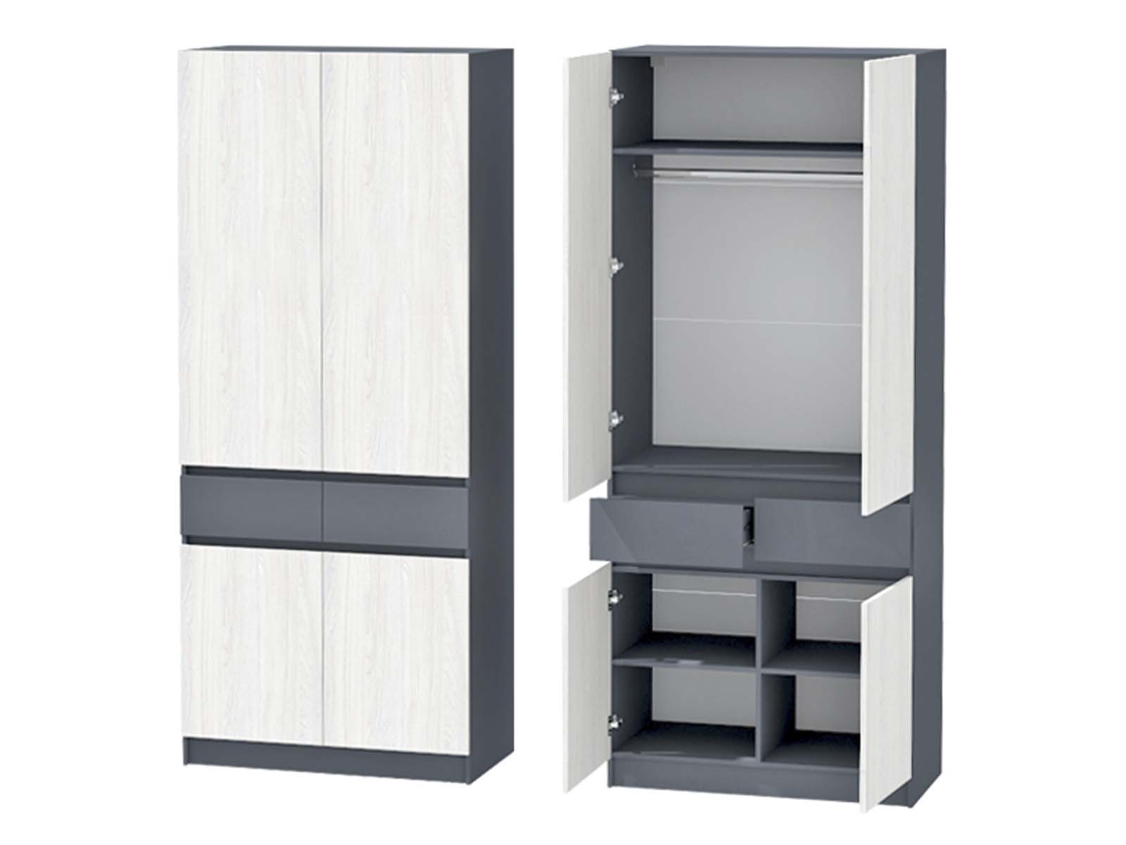 Пенал Иннэс-10, графит/ясень анкор светлый - это продуманное место для вашего гардероба. Внутри: полки для аккуратной раскладки вещей, два выдвижных ящика для мелочей и удобная штанга для плечиков. Компактный снаружи, вместительный внутри — идеальный помощник в спальне или прихожей.