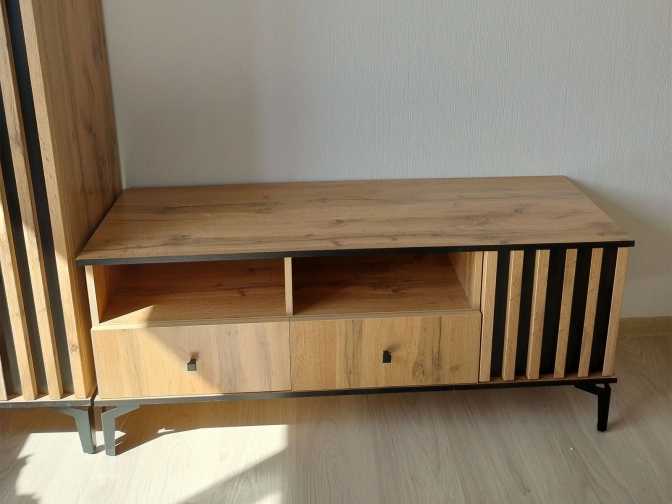 Тумба под ТВ Либерти 51.06 Дуб Вотан/Черный опора h150