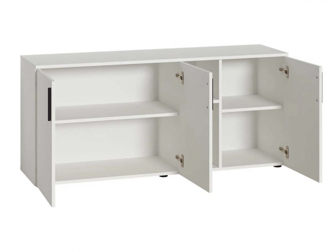 Тумба под ТВ Эйр 16.55 Белый - с двумя закрытыми и одной открытой секцией (по 2 полки в каждой) станет идеальным решением для современного интерьера. Её функциональный дизайн удобен для размещения техники и хранения мелочей.