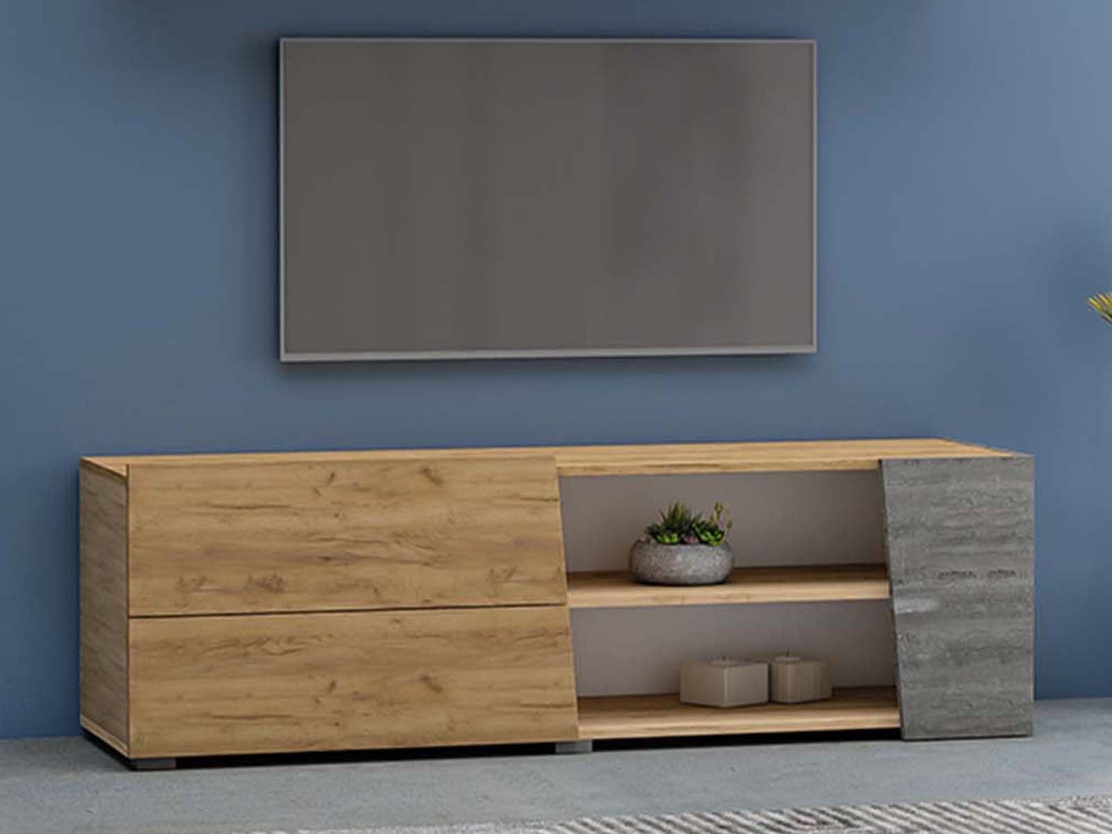 Тумба под ТВ Аллегро 10 - с продуманной системой хранения: выдвижные ящики на шариковых направляющих полного выдвижения и удобные ниши для техники и аксессуаров. Пластиковые опоры придают конструкции устойчивость и завершенный вид. Идеальное решение для организации пространства у телевизора.