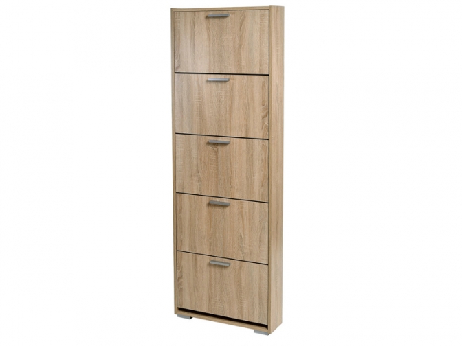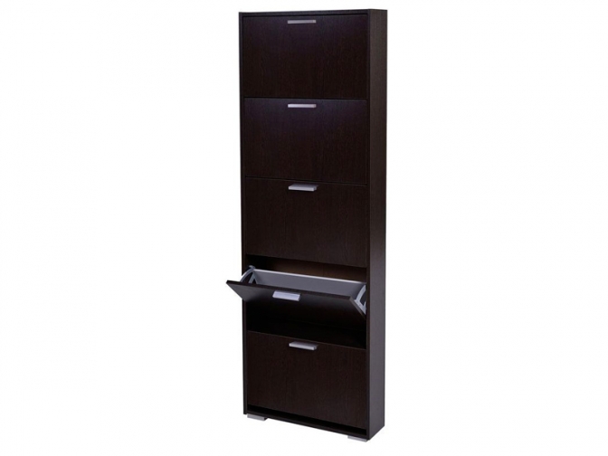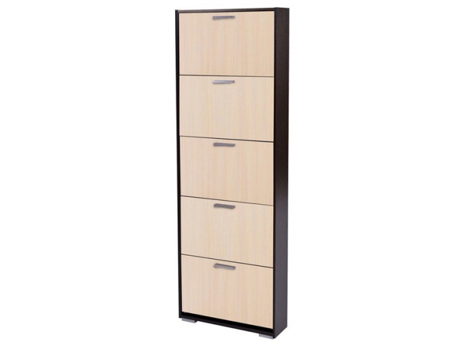 Обувница УК-5 легко поместится даже в небольшую прихожую, став вместилищем для обуви. Тумба имеет 5 отделений, каждое из которых открывается поворотным механизмом под углом и содержит 2 полки для удобного размещения обуви. Отличное решение для тех, у кого много обуви и мало места.