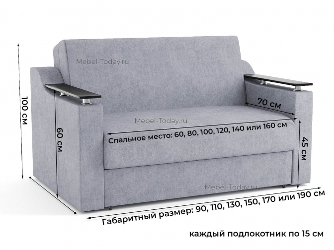 Варианты размеров по ширине спального места: 60, 70, 80, 90, 100, 110, 120, 130, 140, 150 или 160 см.