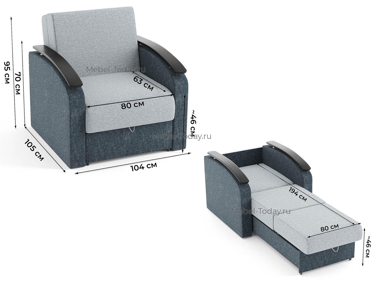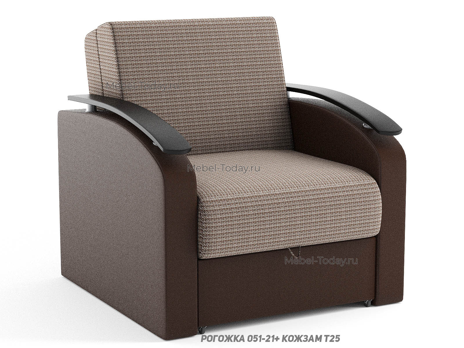 Кресло-кровать Сицилия с деревянными подлокотниками, спальное место 80*194 см, механизм аккордеон, с ящиком для белья