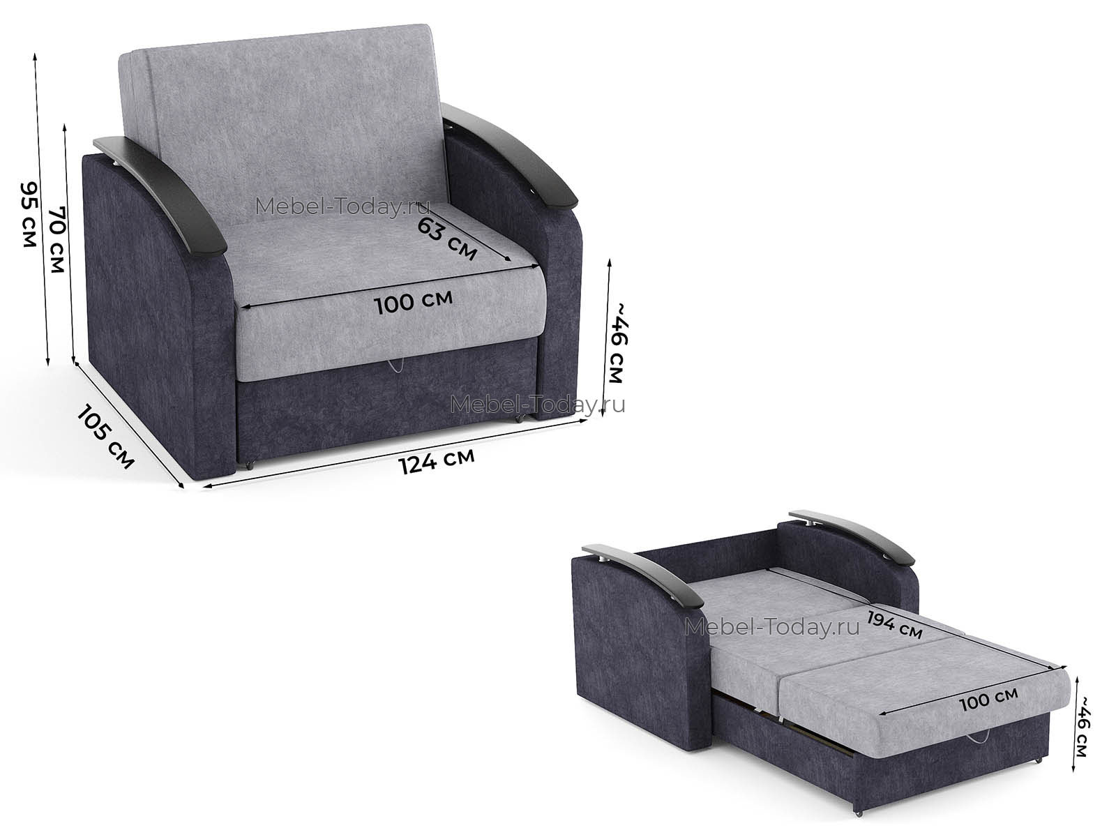Мини-диван Сицилия с деревянными подлокотниками, спальное место 100*194 см, механизм аккордеон, с ящиком для белья