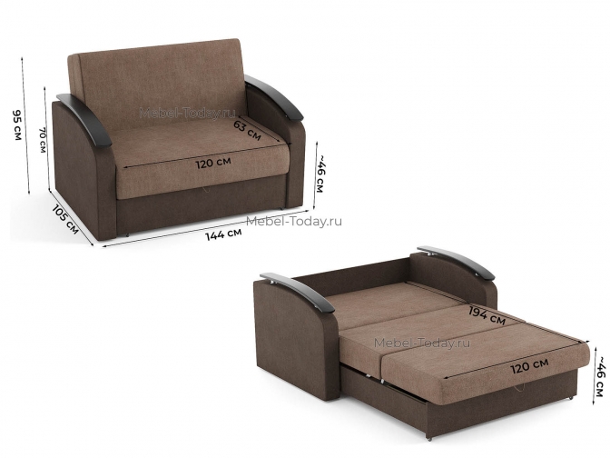 Диван кровать аккордеон Сицилия с деревянными подлокотниками, спальное место 120*194 см, механизм аккордеон, с ящиком для белья