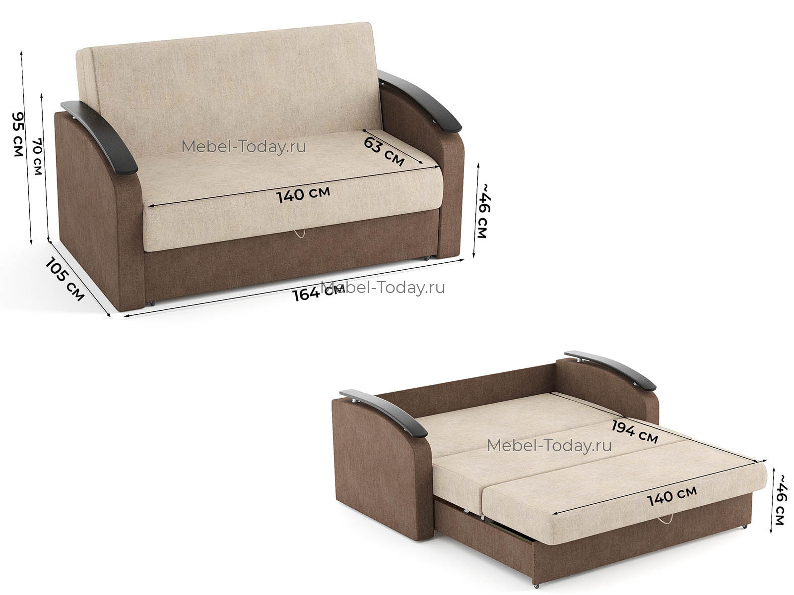 Диван кровать аккордеон Сицилия с деревянными подлокотниками, спальное место 140*194 см, механизм аккордеон, с ящиком для белья