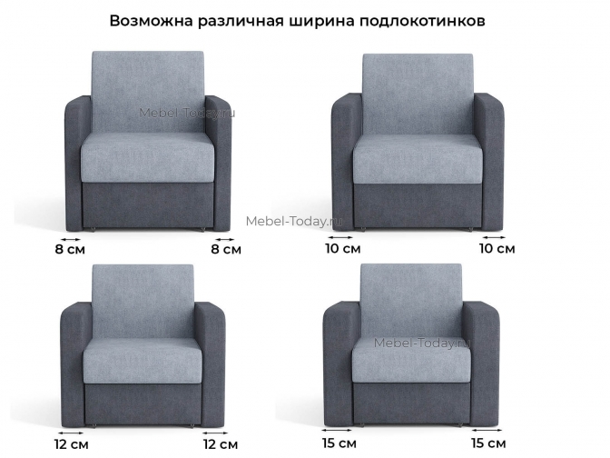 Подлокотники по ширине от 6 до 20 см каждый