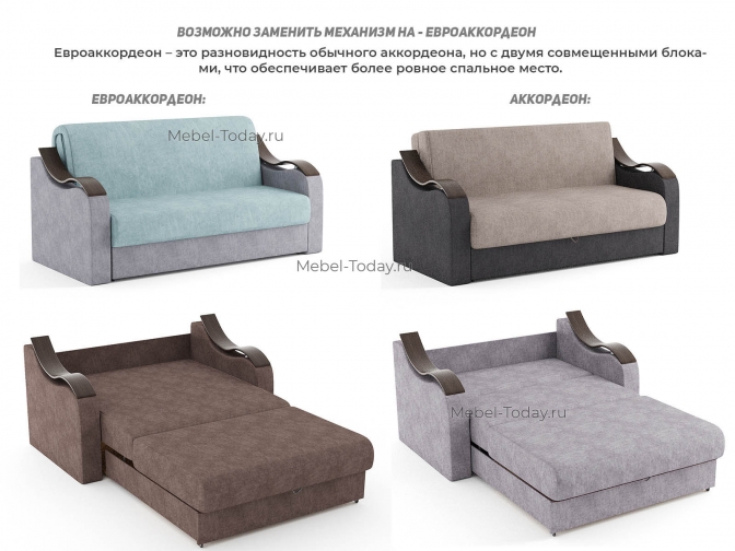 Механизм трансформации: аккордеон, можно заменить на евроаккордеон совмещенный на два блока - без доплат.