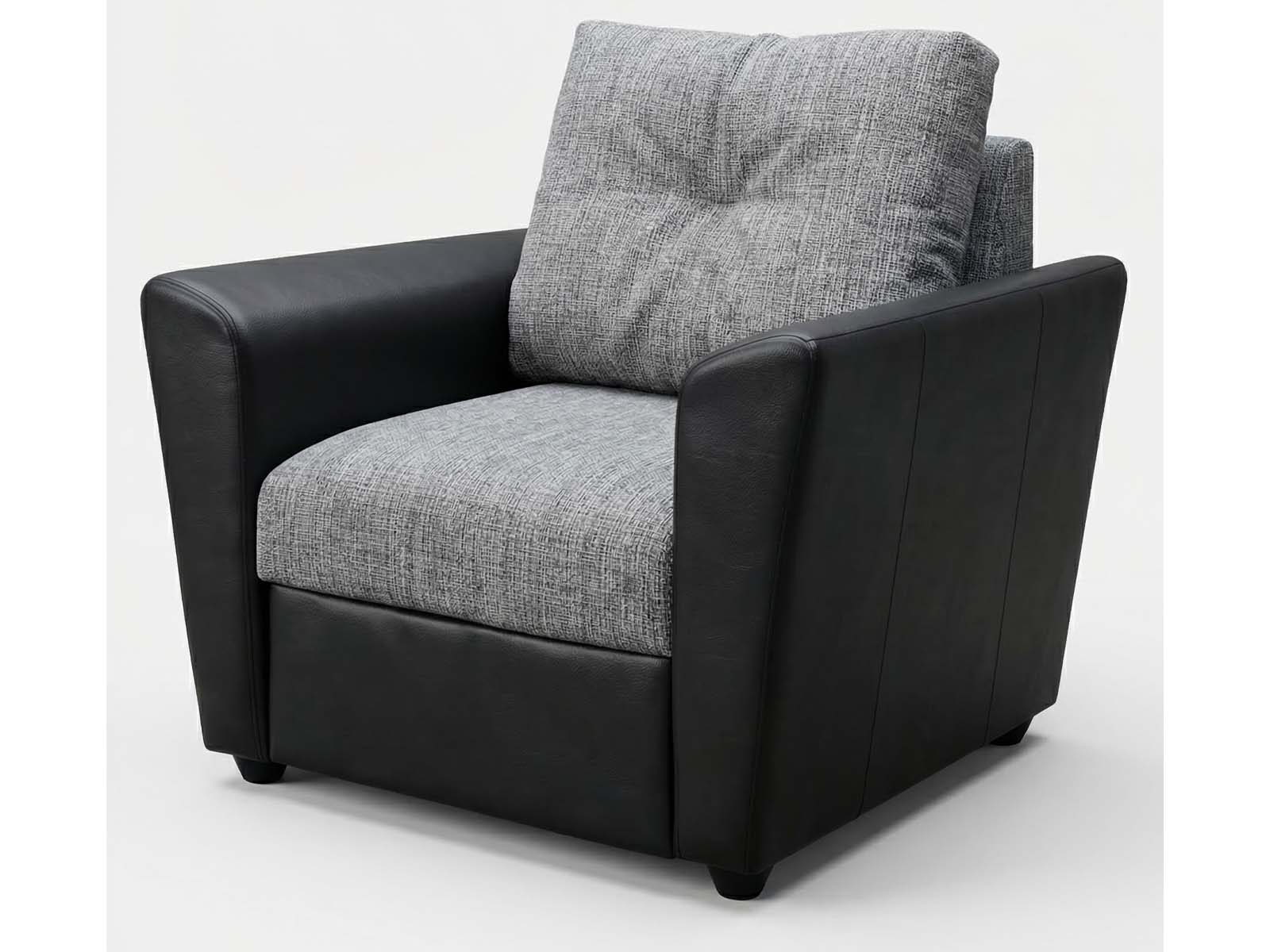 Кресло-кровать аккордеон Амстердам, обивка рогожка серая, кожзам черный