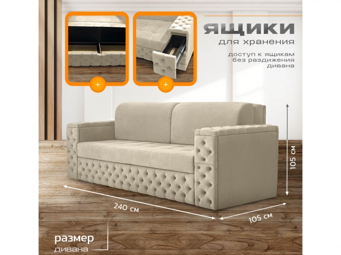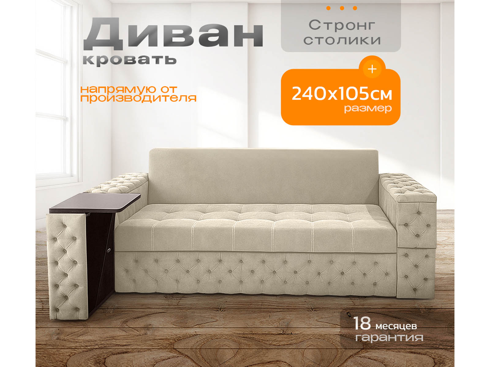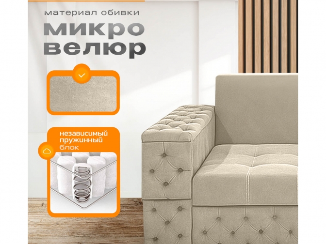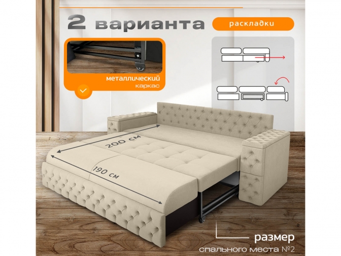 Диван Айсберг каретка+столики на металлокаркасе, спальное 190x200, независимый пружинный блок, тройная трансформация / бежевый