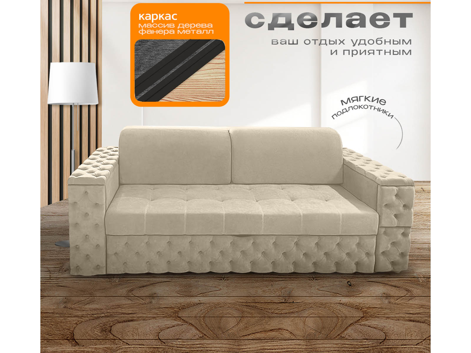 Каркас: металлокаркас + хвойные породы древесины ГОСТ 8486-86, ДВП, ДСП