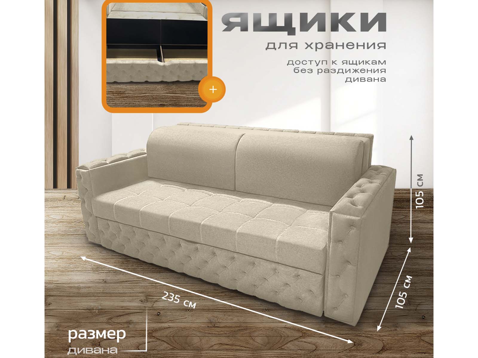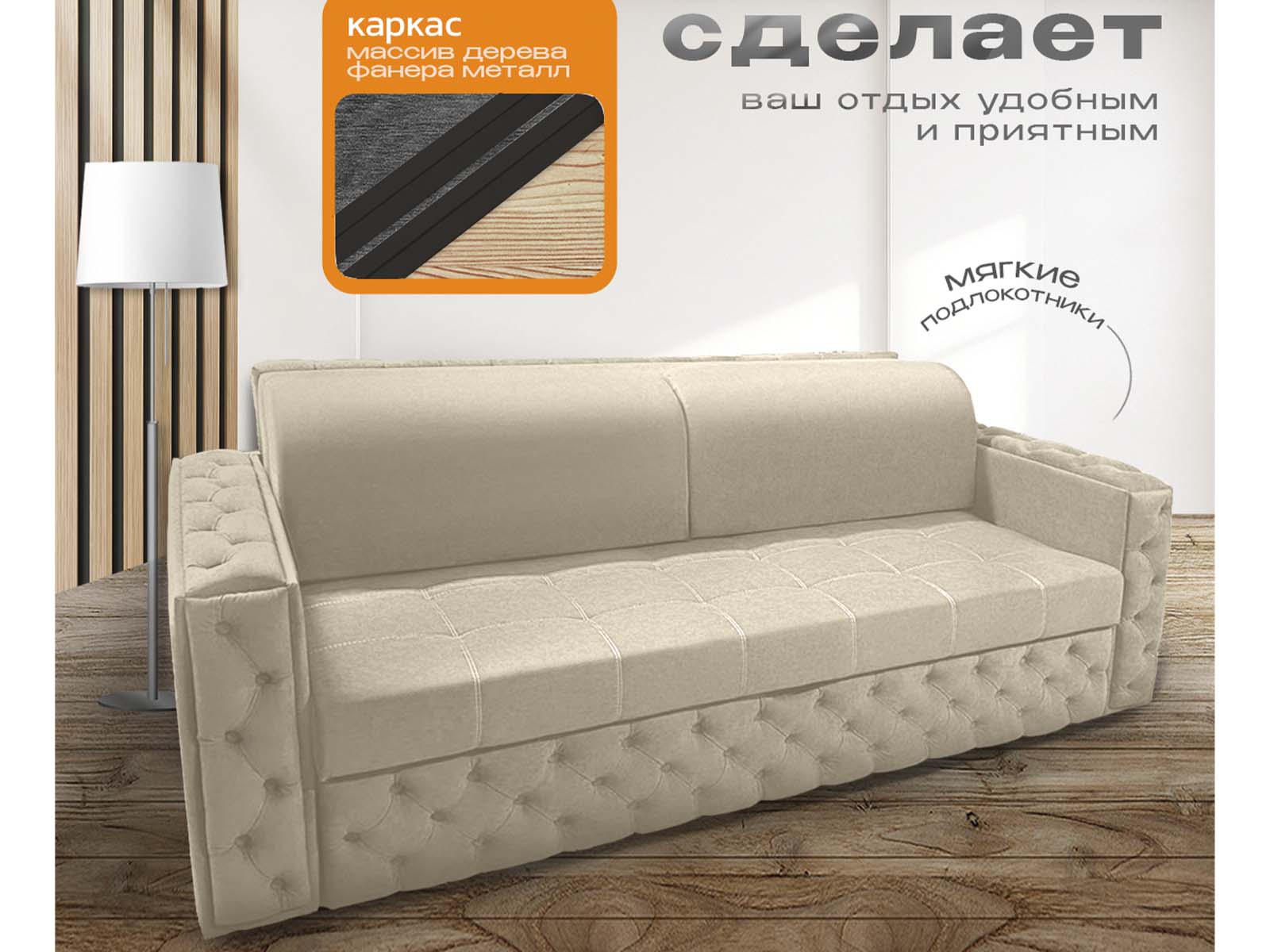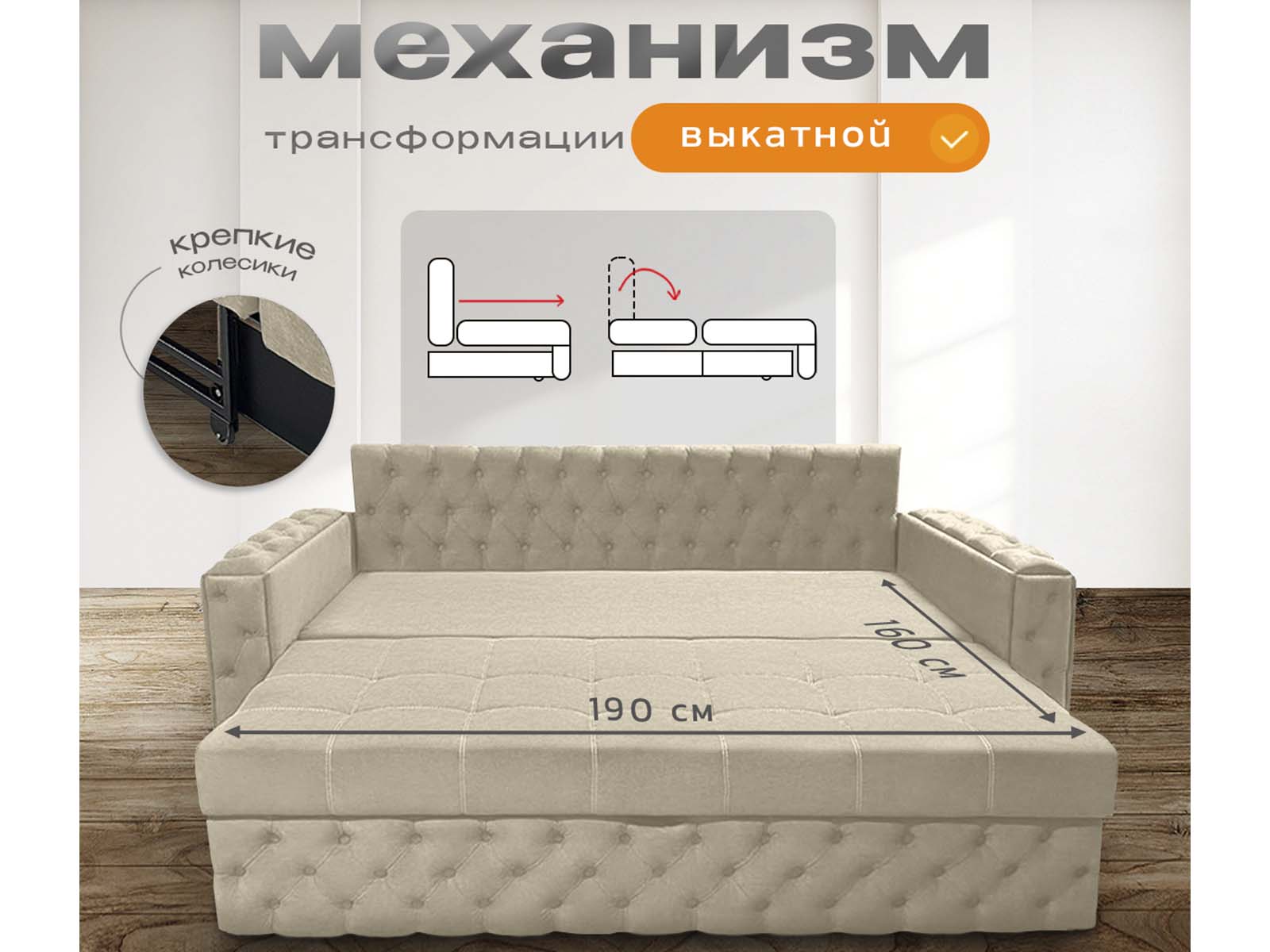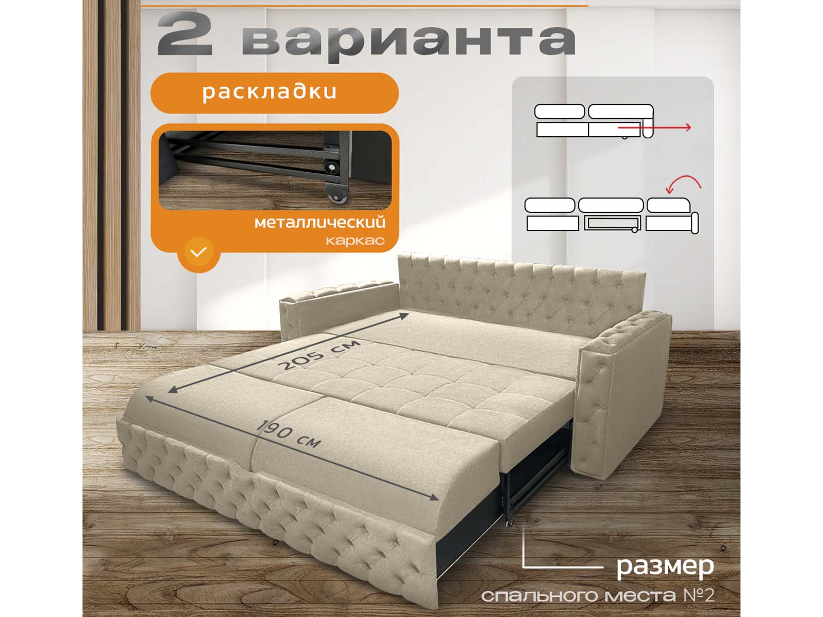 Диван Айсберг каретка, на металлокаркасе, спальное 190x200, независимый пружинный блок, тройная трансформация / бежевый