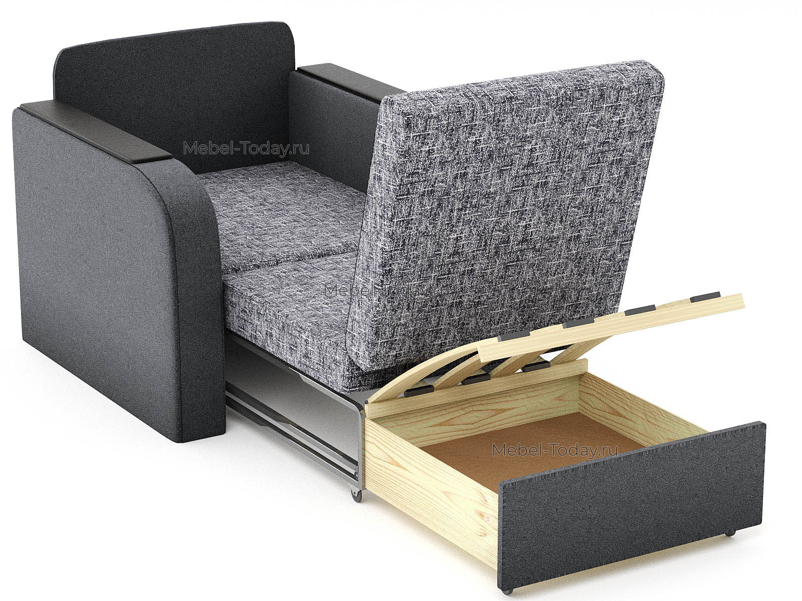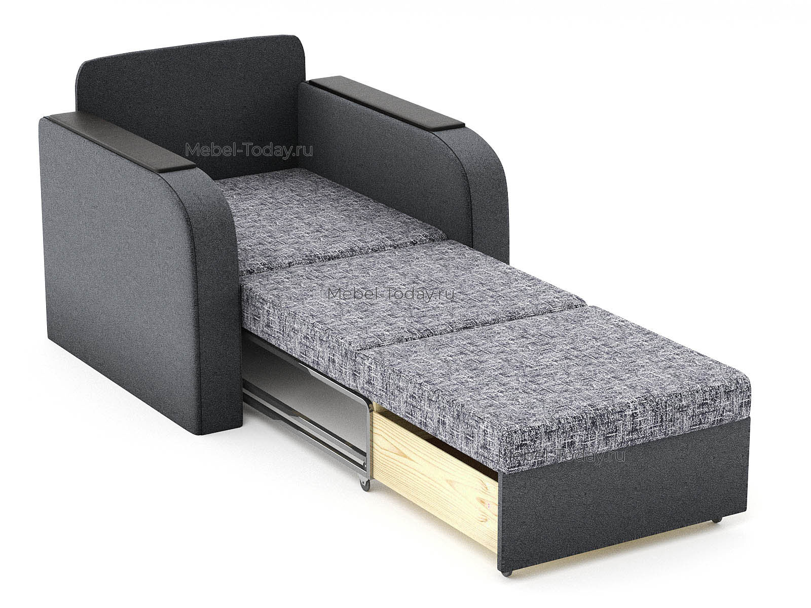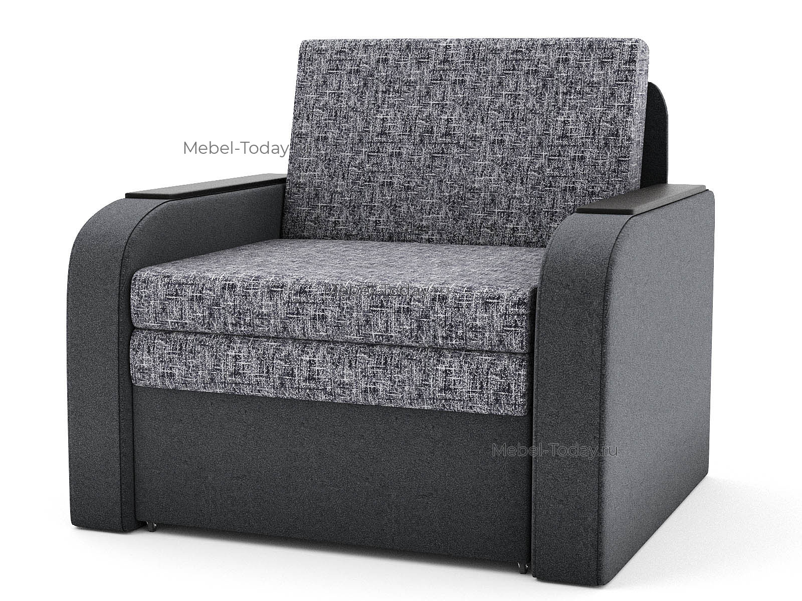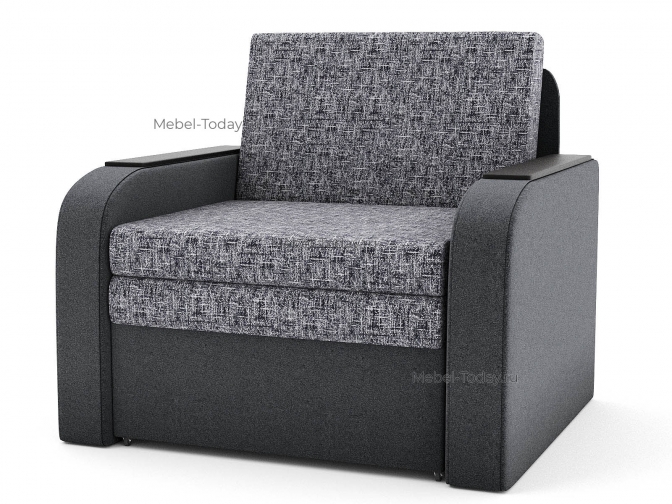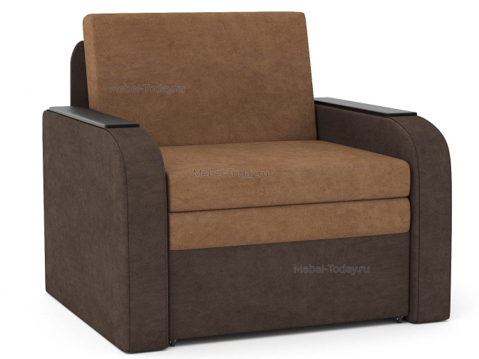 Кресло-кровать Марина 80 ДН (деревянные накладки) на металлокаркасе обивка флок серый или коричневый / односпальное