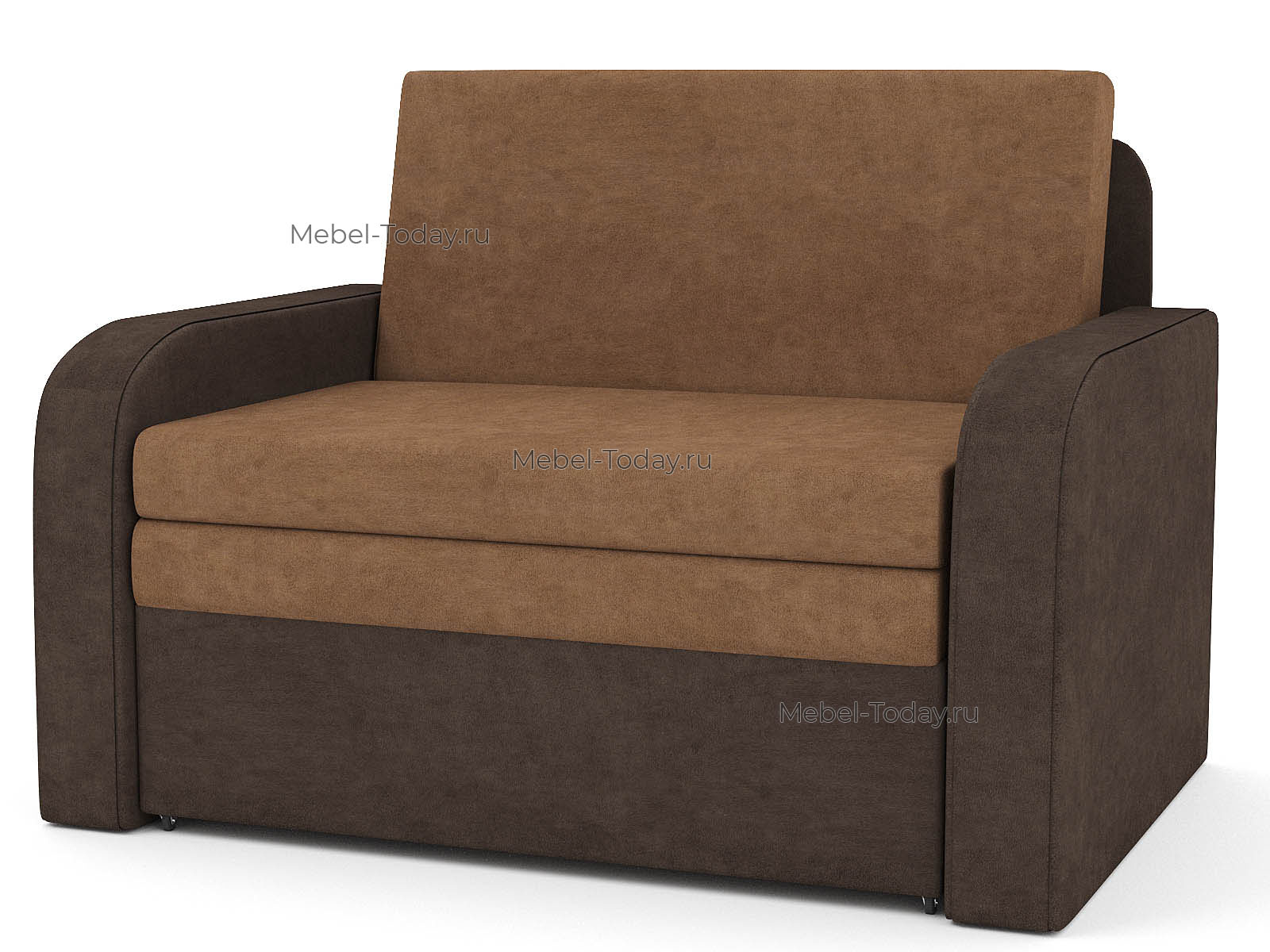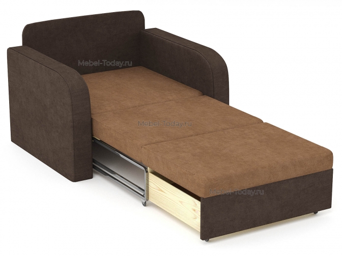 Кресло-кровать 100 МП шир (мягкие широкие подлокотники) на металлокаркасе обивка флок серый или коричневый / полутороспальное