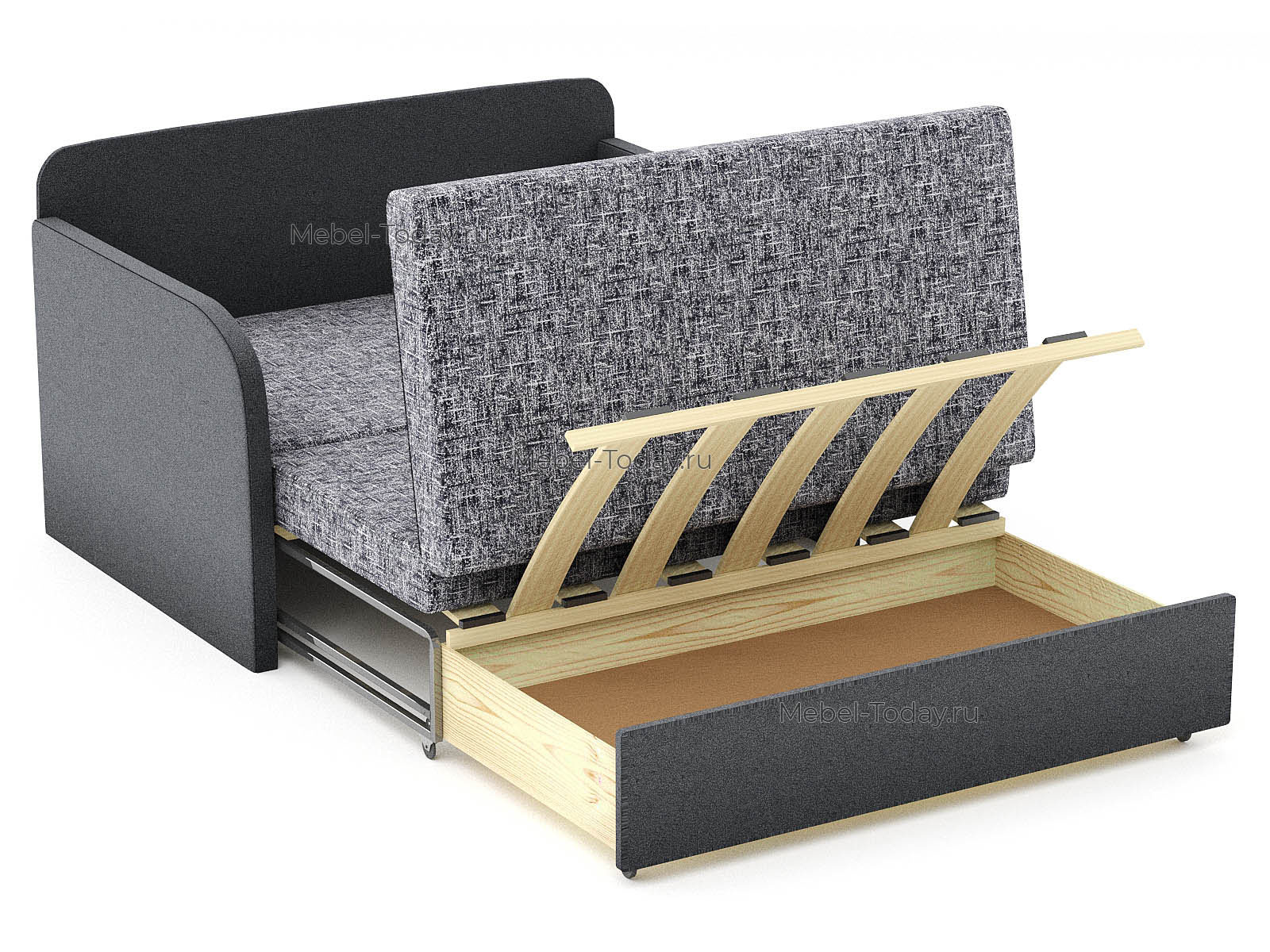 Диван Марина 140 МП (мягкие подлокотники) на металлокаркасе обивка флок серый или коричневый / двуспальный