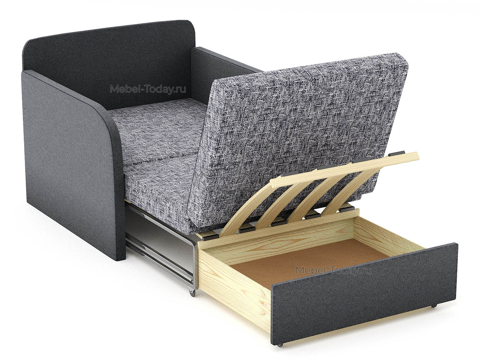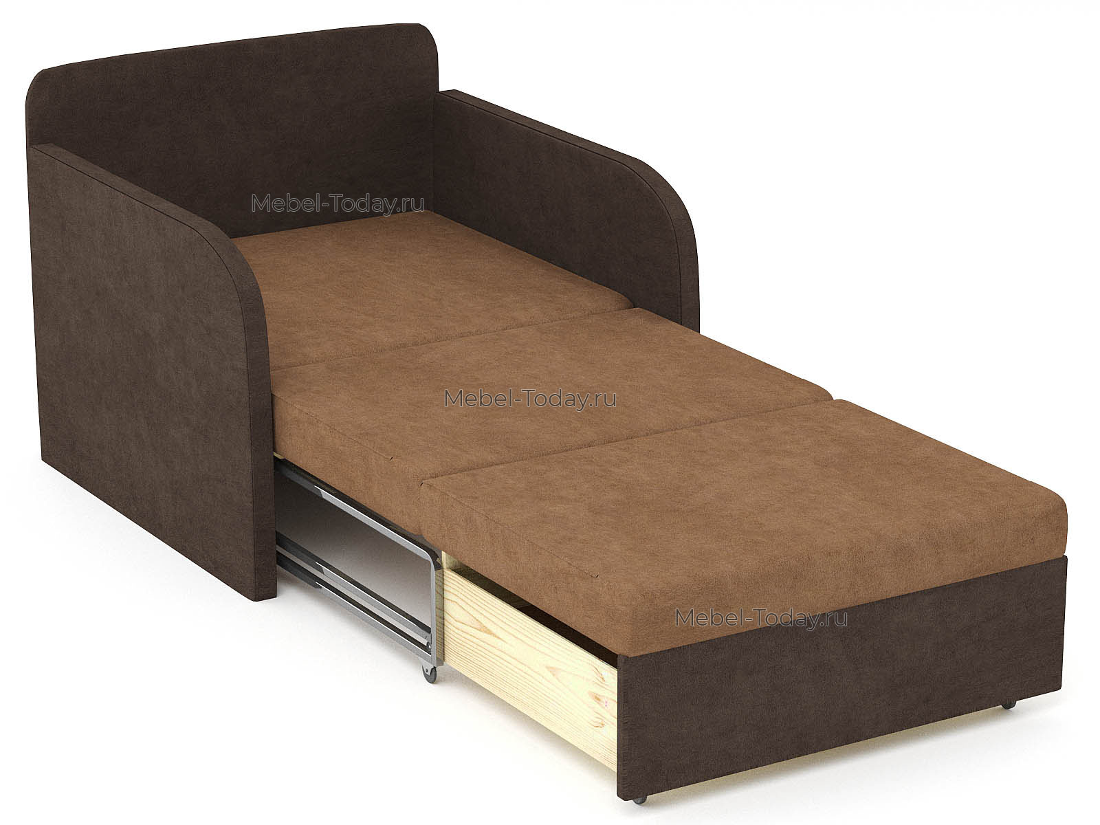 Кресло-кровать Марина 100 МП (мягкие подлокотники) полутороспальное на металлокаркасе, обивка флок серый или коричневый