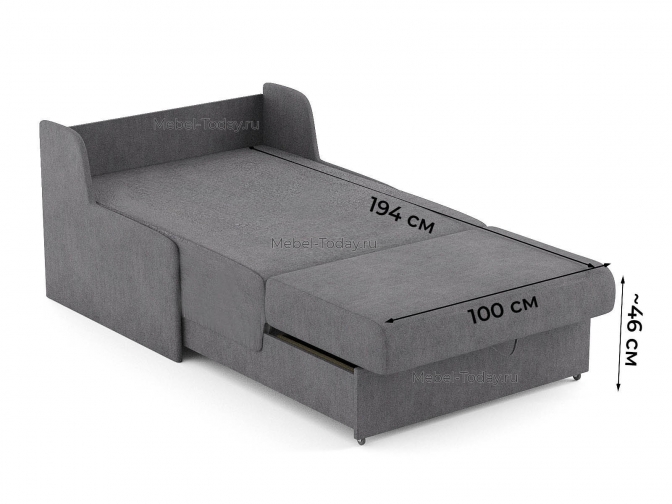 Диван Верона 100 см аккордеон без подлокотинков, полутороспальный, ящик для белья, деревянный каркас