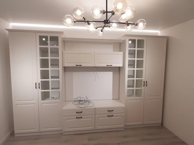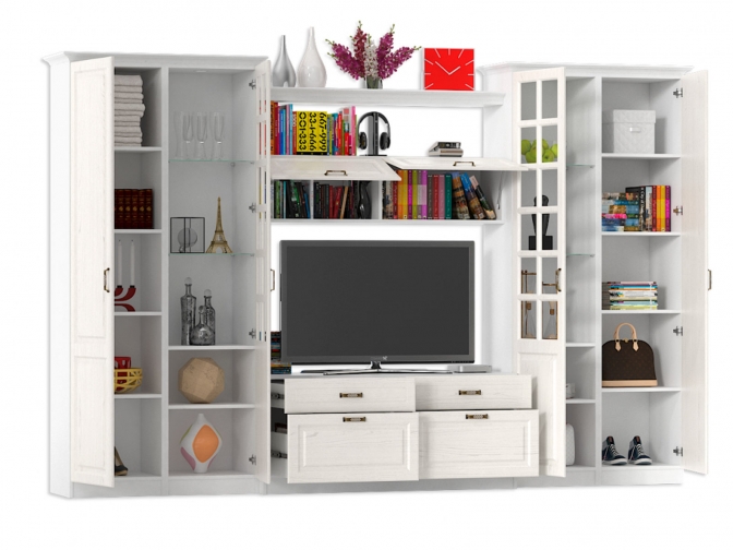 Цена указана за все элементы на фото: Ливерпуль полка, Ливерпуль ТВ-тумба, Ливерпуль витрина (2 шт.), Ливерпуль пенал (2 шт.), Ливерпуль шкаф навесной, Ливерпуль Комплект Карнизов 1000 (2 шт.)