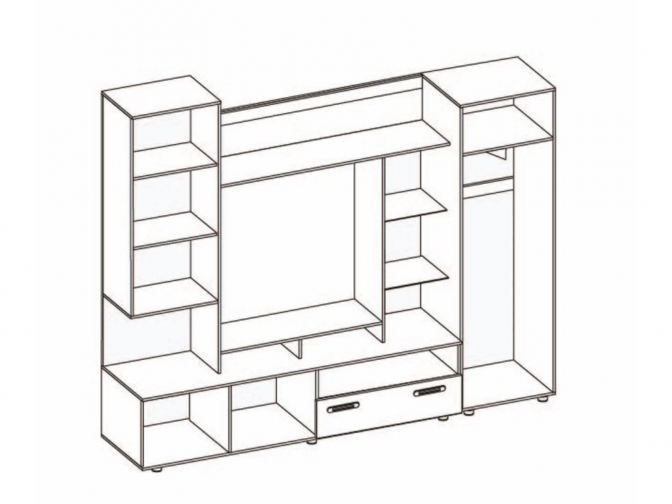 Гостиная Аллегро 3 - гостиная, сочетающая элегантность темного дерева и практичность. В комплект входят тумбы, открытые полки и шкаф, предлагающие гибкое хранение для техники, книг и декора. Ящик на роликовых направляющих гарантирует комфортную эксплуатацию, а двухцветная гамма делает модель универсальным решением для современного интерьера.