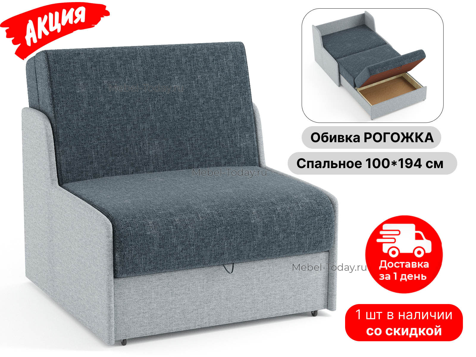 Диван аккордеон Сицилия спальное место 100*194 см в наличии со склада по акции