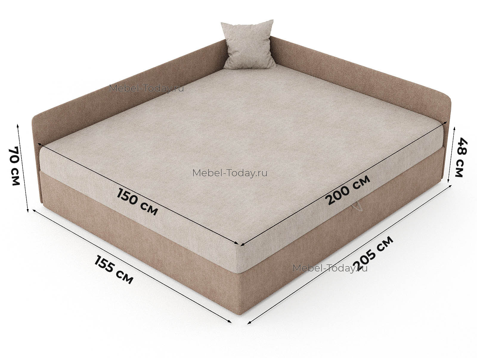 Кровать-тахта двуспальная 150x200 см Кристина угловая, с блоком независимых пружин (ортопедическая) по акции со склада, спальное место: 100*190, обивка велюр бежевый