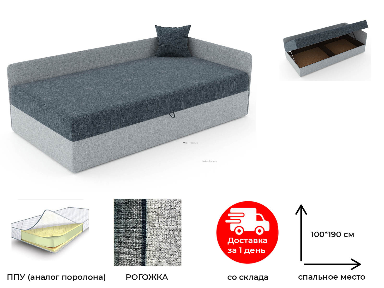 Диван тахта Кристина 100 см угловая, обивка рогожка темно-серая + серая, ящик для белья, по акции в наличии
