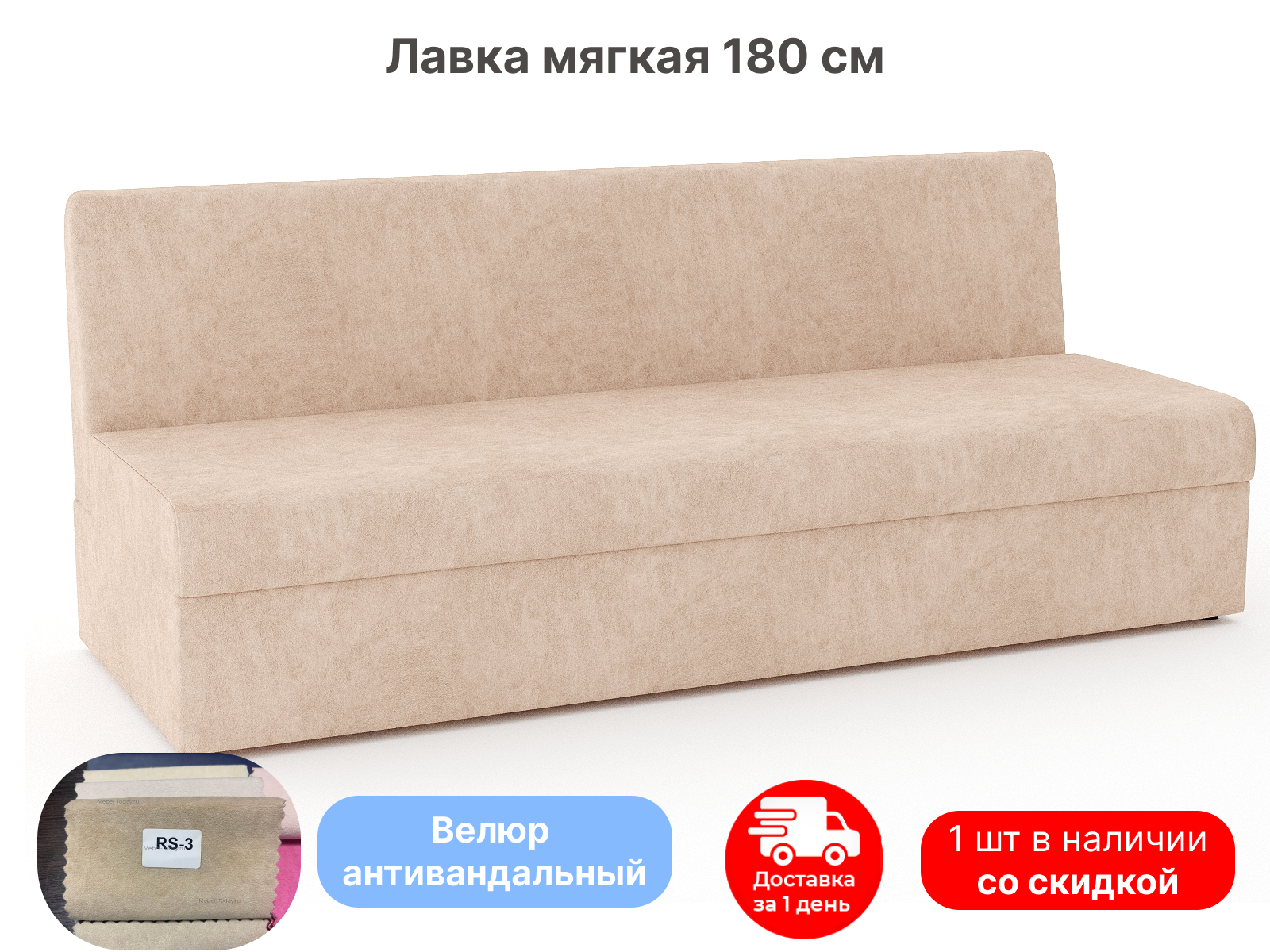 Мягкий диван лавка для кухни офиса прихожей 180 см, обивка велюр бежевый антивандальный / по акции со склада в наличии