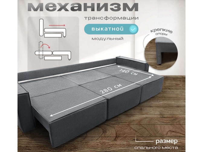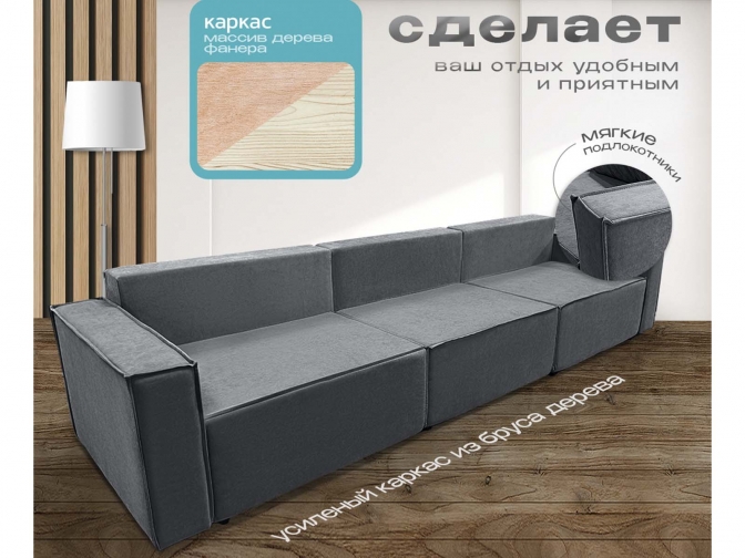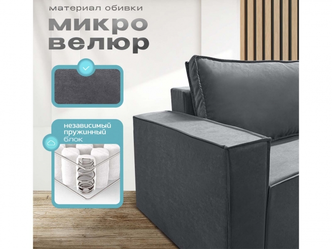Диван Норд-Лофт Макси темно-серый, еврокнижка, ортопедический, велюр или бархат — стильная и функциональная модель для гостиной или студии. Механизм «еврокнижка», комфортное спальное место увеличенной ширины, независимый пружинный блок средней жёсткости. Прочный каркас, износостойкий микровелюр, модульная конструкция.